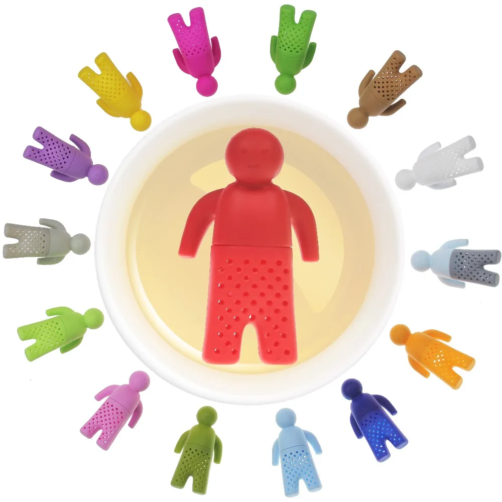 Лучший Купить Оптовая продажа 15 цветов Силиконовые ситечко для чая маленький человек заварка чайная посуда чайные пакетики ситечко для чая горшок чашка ... дешево