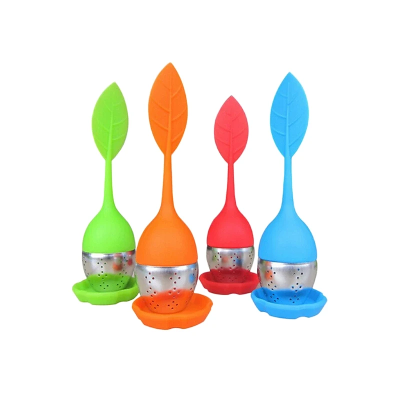 Лучший Купить VFGTERTE 4 шт. мультфильм Чай Infusers силиконовые ручки Нержавеющая nbsp;сталь листьев Фильтр безопасный Офис Чай wares Infusers дешево