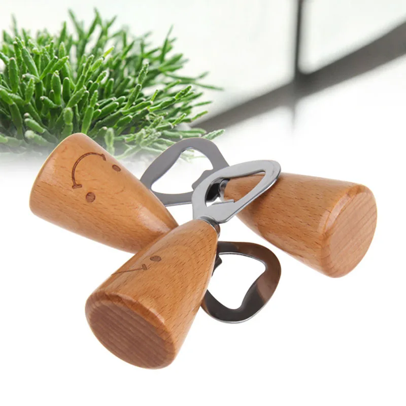 Купить дешевый 10x4 см многофункциональный деревянный Нержавеющая nbsp;сталь ручка Улыбающееся пива открывалка jar простых практических Барная посуда Кухня гад... Цена