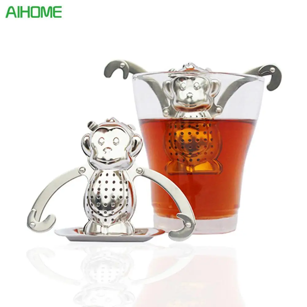 Купить дешевый Обезьяна форме Нержавеющая nbsp;сталь Чай заварки Чай фильтр Чай чайник с подносом Чай изделия Аксессуары Кухня инструменты 1 шт. Цена