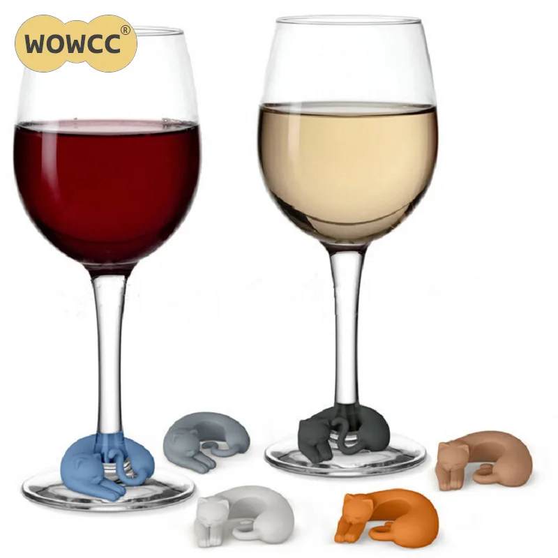 Купить дешевый 6 шт. компл. силиконовой присоской Cat винный Стекло
