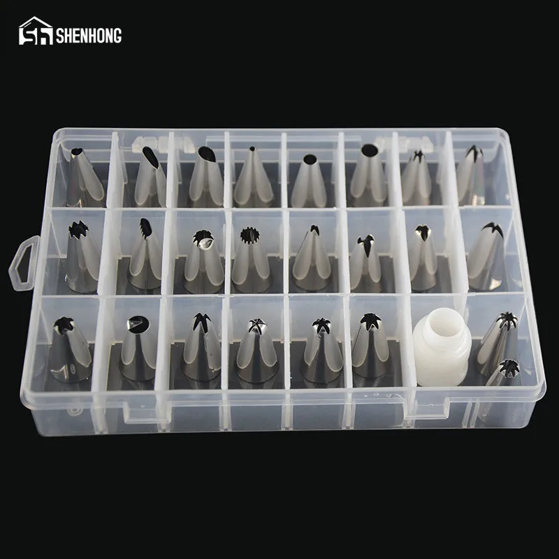 Хорошо Купить SHENHONG 24 шт. Обледенение Трубопроводы советы и 1 муфта украшения торта сопла инструменты Нержавеющая сталь DIY формы для выпечки Кондитерские дешево