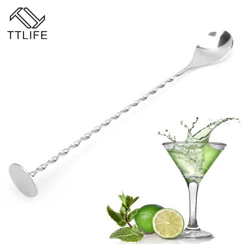 Купить дешевый TTLIFE нержавеющей стальной Резьбовой стержень ложечка для коктейля Кофе коктейльное Мохито ложки для вина Barware бармен инструменты аксессуар... онлайн