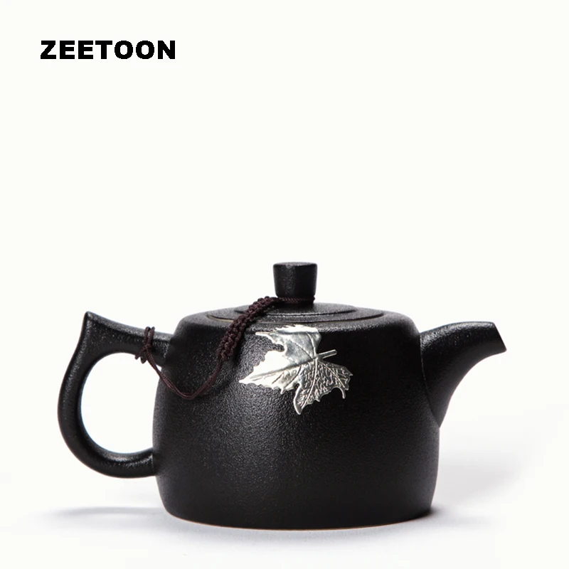 Купить дешевый 250 мл черный дзен бутик ручной инкрустированные Олово кленовый лист грубая керамика Чай горшок кунг фу Чай комплект Утварь Чай горшок Винта... онлайн