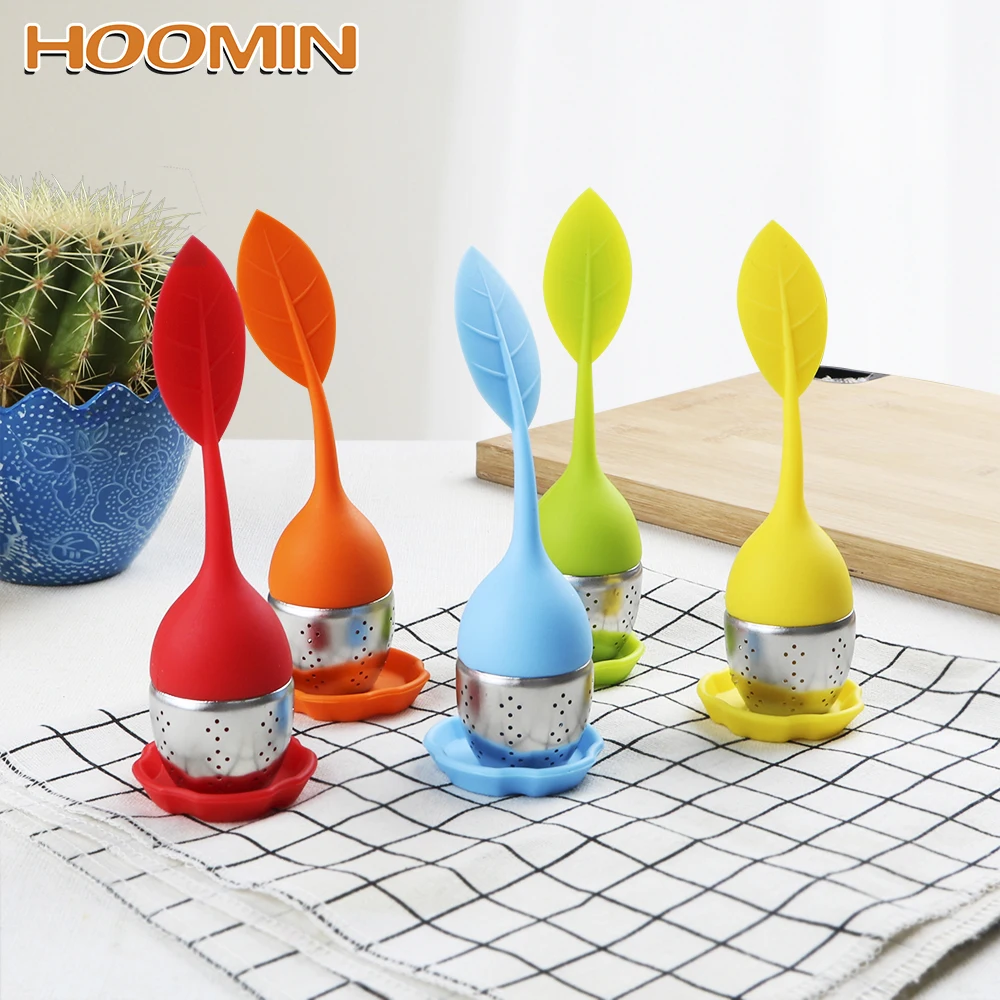 Купить дешевый HOOMIN Высокая термостойкость милый лист фильтры Ароматические чайные инструменты чайное ситечко, чай сумка чайная посуда силиконовый чай ... Цена