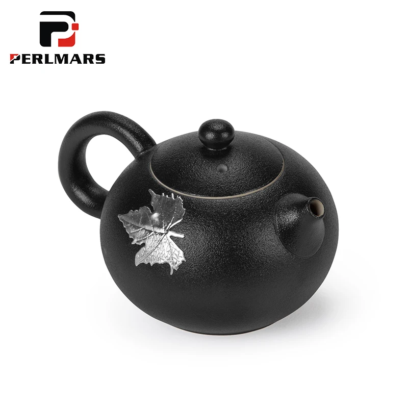 Лучший Купить 250 мл черный дзен грубая керамика Чай горшок бутик ручной инкрустированные Олово кленовый лист Винтаж кунг фу Чай комплект Чай ware ocffee чайник дешево