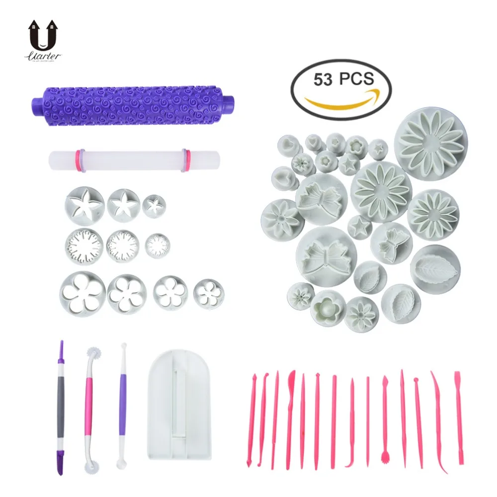 Хорошо продажа Uarter 53 шт. Практические Торт Помадка Отделка высокое качество Пластик украшения торта инструмент Портативный для выпечки Украшение Наборы дешево
