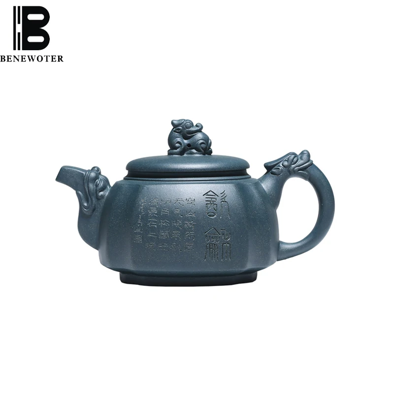 Купить дешевый 280 мл Исин Аутентичные Зеленый грязи Цзы Ша горшок ручной гравировки слово чайник Винтаж утварь 13 отверстия фиолетовый глиняный горшок утва... Цена