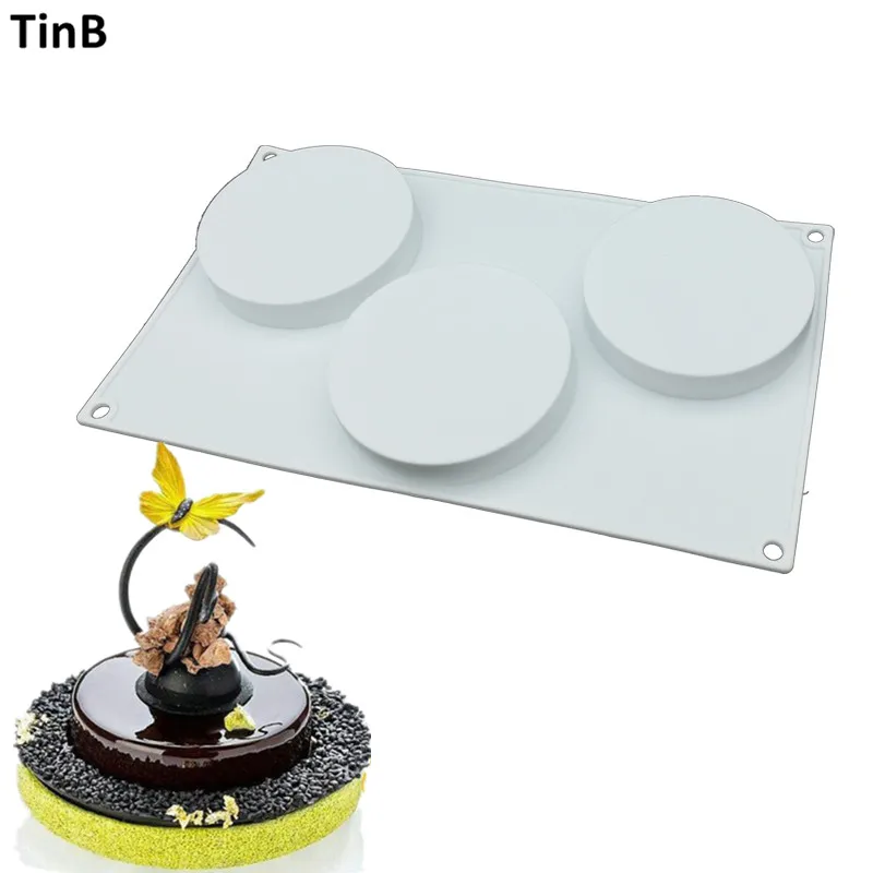 Лучший продажа Кухня аксессуары 3D силиконовые формы торт украшения 3 Круглый Форма силиконовые формы для выпечки поставок желе мыло формы дешево