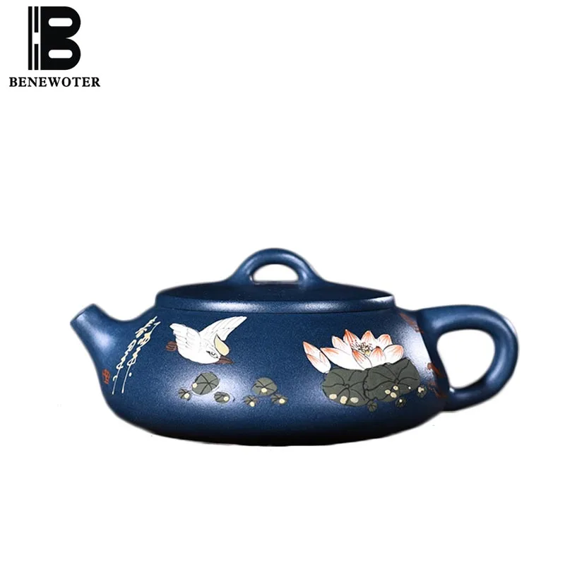 Лучший продажа 200cc Исин Аутентичные Фиолетовый Глина чайник сырой руды 9 отверстия shipiao горшок ручной росписью лотоса узор Книги по искусству Утварь Tieguanyin ... дешево