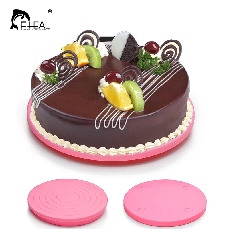 Купить дешевый FHEAL пластик Поворотные столы для тортов вращающийся противоскольжения помадка торт мусс DIY украшения круглый лоток формы для выпечки Кухон... Цена