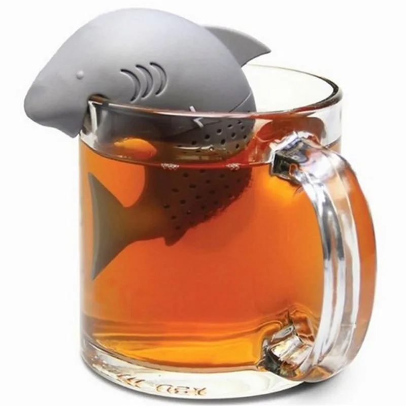 Хорошо продажа 1 шт. серый силиконовый тройник ситечко Акула заварки