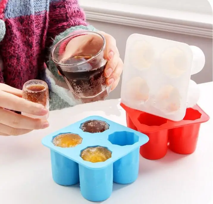 Лучший продажа Гибкий силиконовый лед выстрел Стекло Плесень лоток чайник виски составляет 4 Ice Плесень выстрел Очки для виски вино barware аксессуары дешево