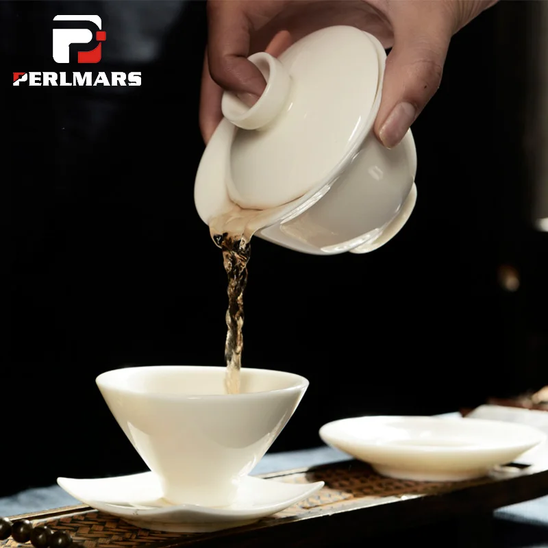 Лучший продажа 135 мл бутик белый фарфор Gaiwan Керамика Чай горшок мастер чашки Керамика Крышка Чаша кунг фу Чай комплект Чай Maker горшок Чай ware супница дешево
