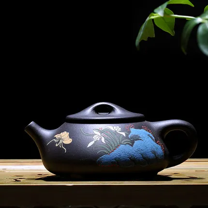 Купить дешевый Бесплатная доставка 210 мл Исин фиолетовый глина Чай горшок известный ручной работы чайник вентилятор linqiang Чай Шер черный Чжу грязи роспись ... онлайн