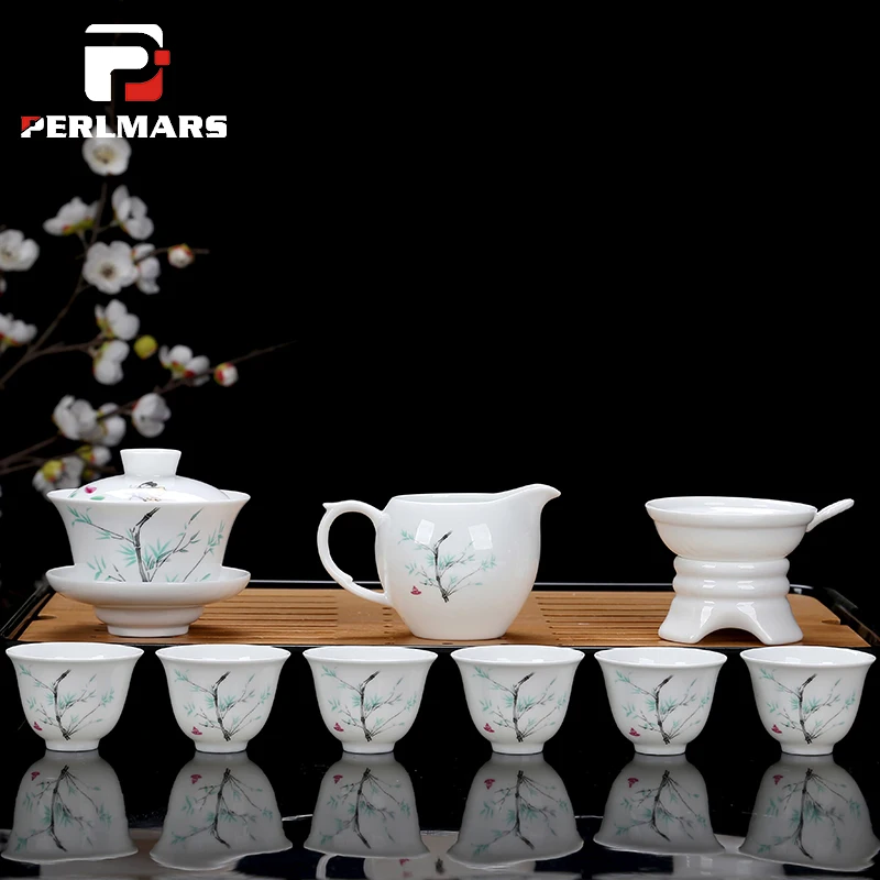 Лучший продажа 9 шт. лот Новый стиль кунг фу Чай набор посуды фарфор Чай комплект 6cup 1gaiwan Chahai 1 Чай фильтр домашнего чай церемонии посуда дешево