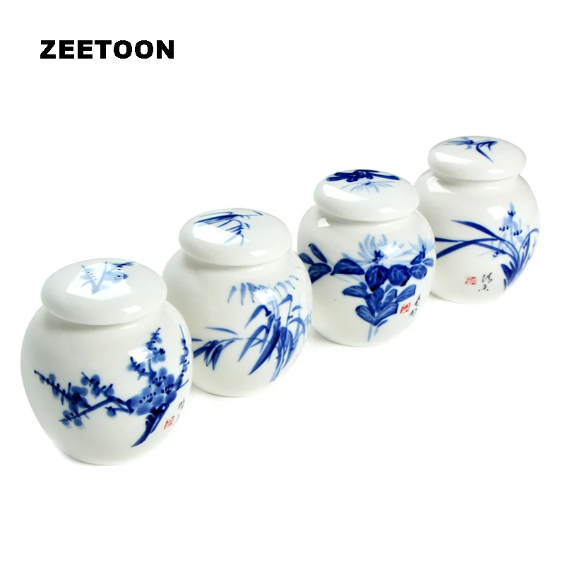 Лучший Купить Чай Caddy небольшой банок Керамика синий и белый фарфор