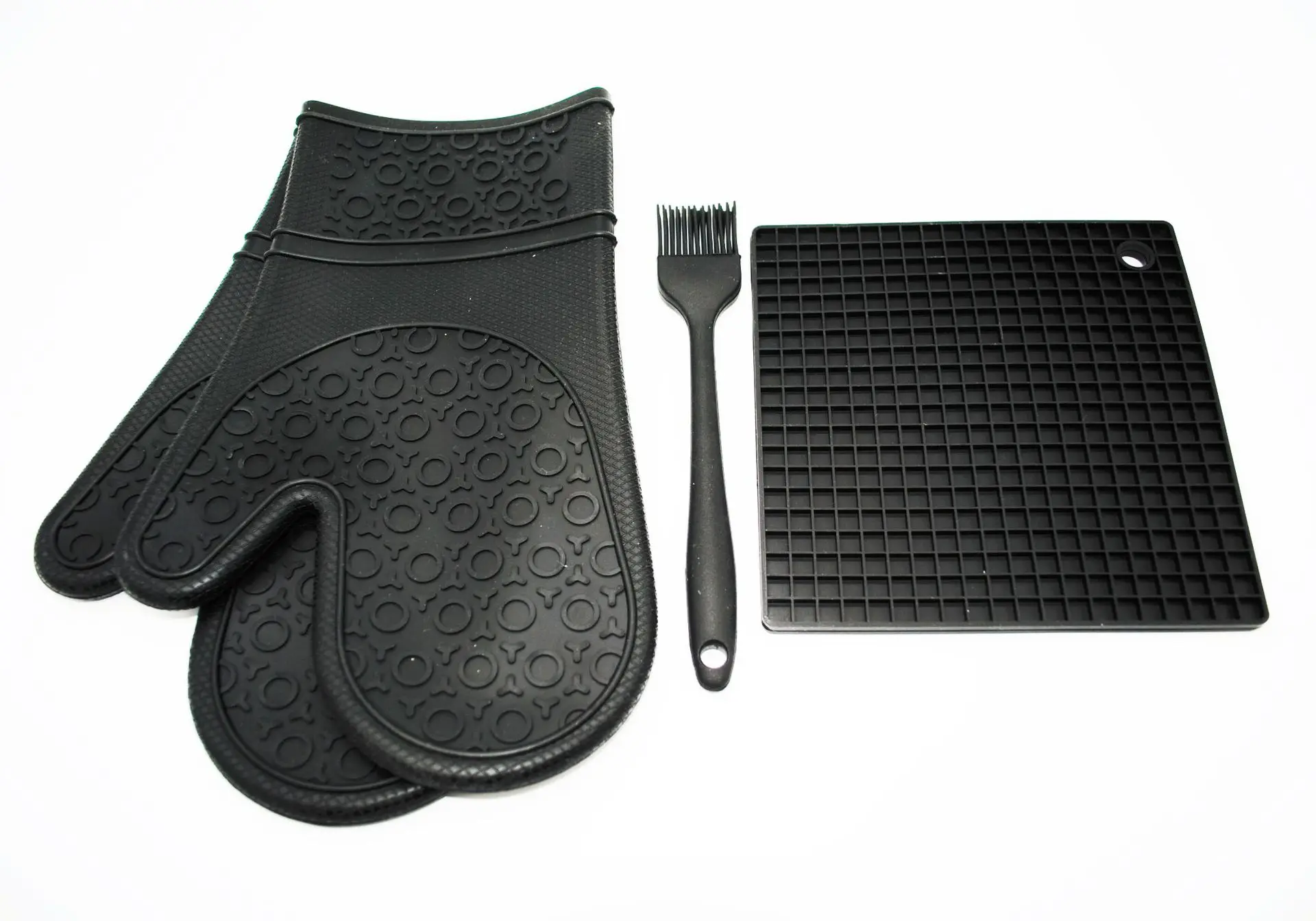 Хорошо продажа DQ17 4in1 силиконовые наборы для выпечки узор перчатки для духовки устойчивые Прихватки для мангала кухня расчёски волос Прихватки Черный Проч... дешево