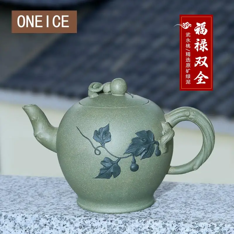 Лучший продажа Исин чай горшок ручной работы сырой руды Аутентичные зеленая грязь Фулу оба кунг фу чай 500 мл китайский Исин чай ware чайные горшки дешево